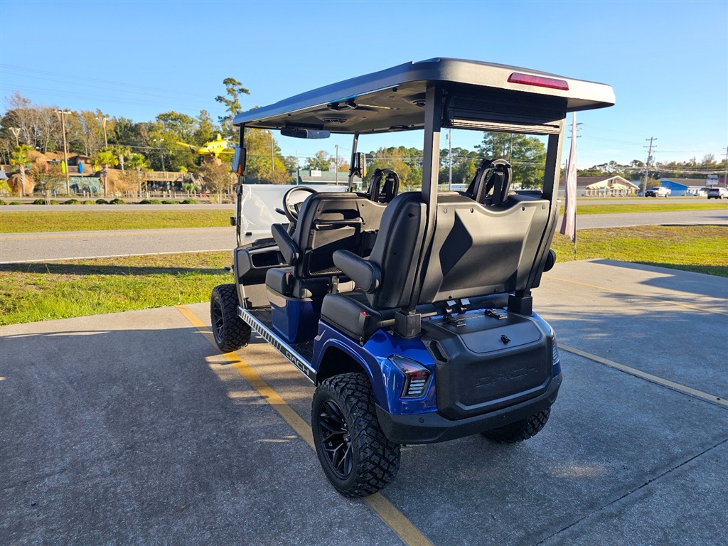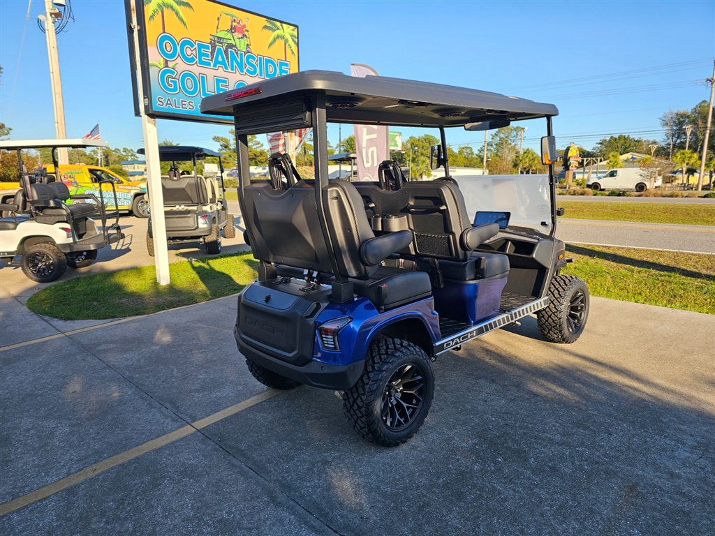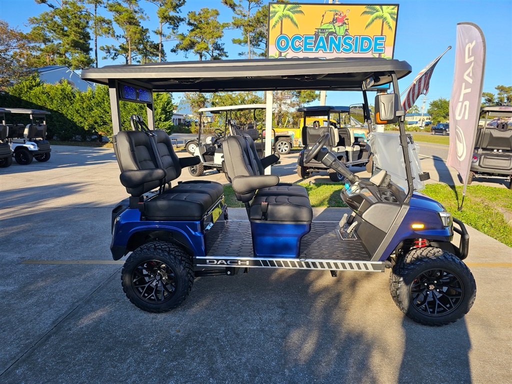 BRAND NEW!!! Introducing the DACH Apollo 4 Forward golf cart! Blue on Black 73.6V Lithium battery est. 40+mile range / full charge! AC controller and AC 6 3kw motor Fast 25mph Independent front suspension 4 wheels Hydraulic disc brakes with EMB parking brake Steering Wheel Controls radio/cruise Cruise Control! First in the industry Self Canceling Turn Signals Entertainment Top w/ 2 lighted speakers and roof LED party lights Lighted rear Soundbar NFC + phone NFC + Phone Bluetooth with Start/Stop Button Dash top wireless phone charging! W/usb/usb C plugs. Mulit fuction steering wheel 12.3 inch touch screen display Apple CarPlay/Android Auto Running board / side steps and Much More!!!! WARANTY: Lifetime: Frame 5 year: Battery 3 year: Motor / Controller 2 year: bumper to bumper $11,980.00!!! Must see!!! Test Drives Available Delivery Available