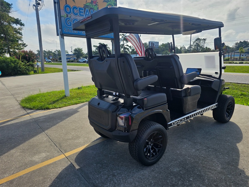 BRAND NEW!!! Introducing the DACH Apollo 4 Forward golf cart! Black on Black 73.6V Lithium battery est. 40+mile range / full charge! AC controller and AC 6 3kw motor Fast 25mph Independent front suspension 4 wheels Hydraulic disc brakes with EMB parking brake Steering Wheel Controls radio/cruise Cruise Control! First in the industry Self Canceling Turn Signals Entertainment Top w/ 2 lighted speakers and roof LED party lights Lighted rear Soundbar NFC + phone NFC + Phone Bluetooth with Start/Stop Button Dash top wireless phone charging! W/usb/usb C plugs. Mulit fuction steering wheel 12.3 inch touch screen display Apple CarPlay/Android Auto Running board / side steps and Much More!!!! WARANTY: Lifetime: Frame 5 year: Battery 3 year: Motor / Controller 2 year: bumper to bumper $11,980.00!!! Must see!!! Test Drives Available Delivery Available
