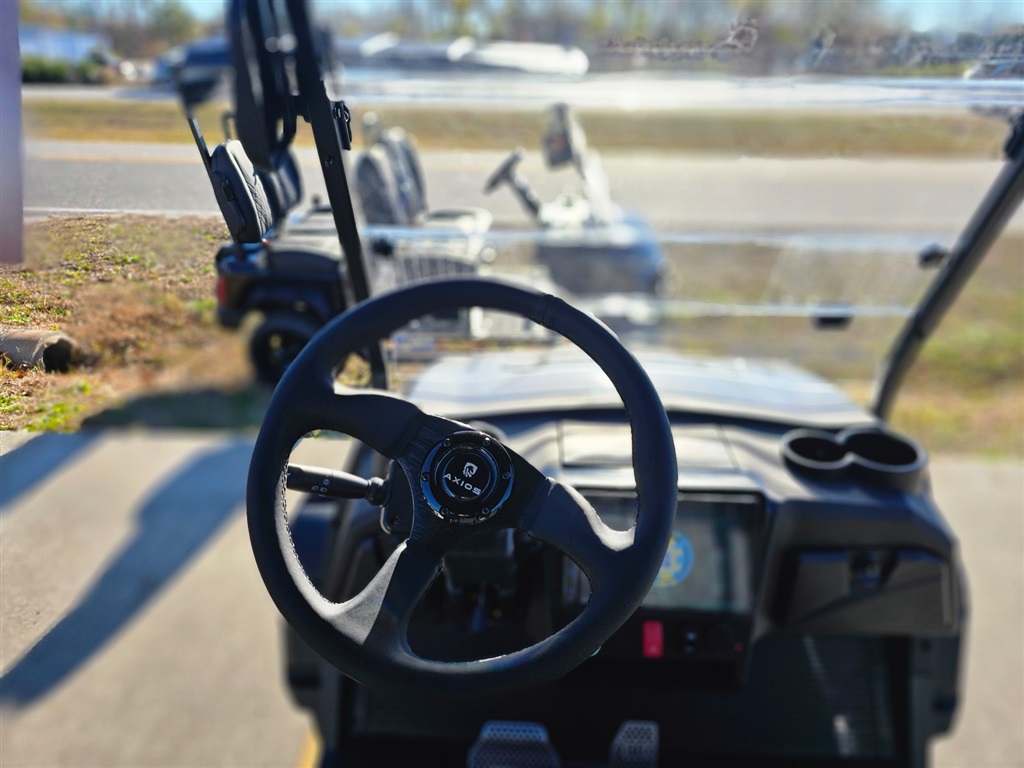 E42L Motor 6.3Kw AC Controller Navitas Controller Size 72V 600A Battery Li-ion 72 volt, 105Ah Charger 15A Frame Aluminum Brake System Disc Brakes Parking Brake Electronic Front Suspension Independent Rear Suspension Trailing Arm Wheel 14 Aluminum Overall Dimension 120x53x79 Passenger Capacity 4 Maximum Speed 25 mph Vehicle Weight 1,160 (lbs) GVWR (lbs) 2,432 Dimensions 79in Tall Charge Time 5?7 hrs LSV Ready Standard Head Lights LED Tail Lights LED Canceling Turn Signals LED Lights Standard Running Boards Standard Windshield Folding DOT Audio & Interior Speakers 4 Soundbar Standard Subwoofer Tilt Steering Wheel 10? Infotainment Touchscreen Wireless Phone Charging USB & USB C 2 Year Parts and Labor Warranty, 5 Year Free Replacement Battery