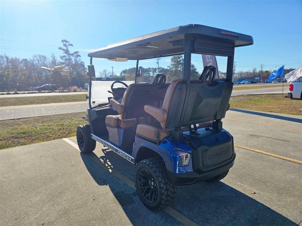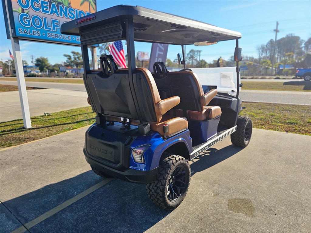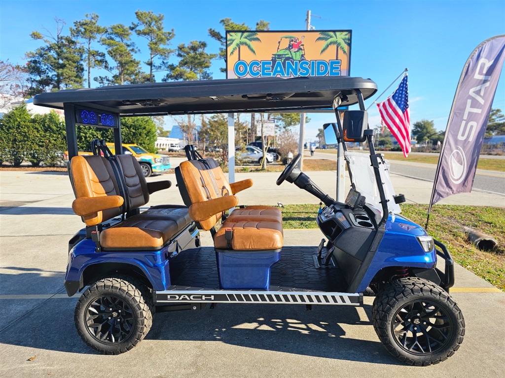 BRAND NEW!!! Introducing the DACH Apollo 4 Forward golf cart! Blue/Carmel 73.6V Lithium battery est. 40+mile range / full charge! AC controller and AC 6 3kw motor Fast 25mph Independent front suspension 4 wheels Hydraulic disc brakes with EMB parking brake Steering Wheel Controls radio/cruise Cruise Control! First in the industry Self Canceling Turn Signals Entertainment Top w/ 2 lighted speakers and roof LED party lights Lighted rear Soundbar NFC + phone NFC + Phone Bluetooth with Start/Stop Button Dash top wireless phone charging! W/usb/usb C plugs. Mulit fuction steering wheel 12.3 inch touch screen display Apple CarPlay/Android Auto Running board / side steps and Much More!!!! WARANTY: Lifetime: Frame 5 year: Battery 3 year: Motor / Controller 2 year: bumper to bumper $11,980.00!!! Must see!!! Test Drives Available Delivery Available
