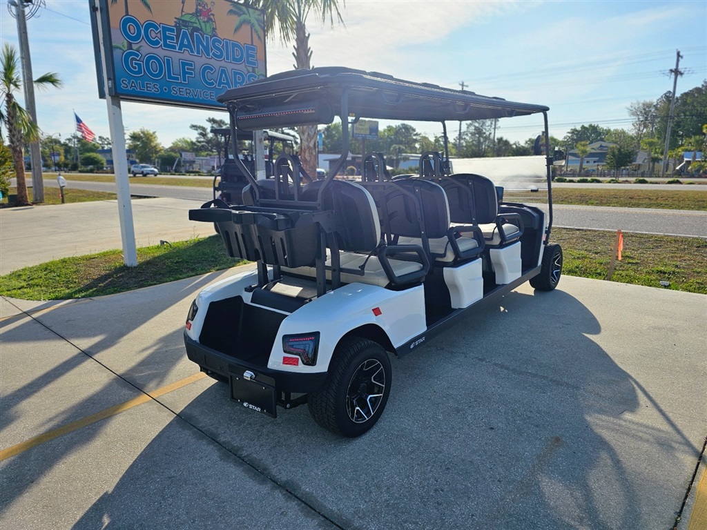 The STAR EV J Model is a versatile, street-legal electric golf cart built for everyday cruising, neighborhood travel, and community use. With a top speed of up to 25mph and full compliance with LSV (Low Speed Vehicle) federal safety requirements, the J Model delivers smooth and confident performance on local roads and paved paths. Available in multiple passenger configurations ? 6-seat models, plus lifted and long-range options ? the J Model is ideal for solo drivers, couples, families, or larger groups. Each version combines practical performance, modern design, and everyday comfort in one stylish electric vehicle. Built for convenience and durability, the J Model includes features like LED headlights and taillights, safety seatbelts, side mirrors, a flip-down rear seat with storage trunk, and a 7 digital display with backup camera. Optional LiFePO4 lithium battery upgrades provide longer range, faster charging, and extended cycle life for frequent use. Whether you?re searching for a street legal golf cart, lithium golf cart, or a family-friendly electric vehicle, the STAR EV J Model delivers reliable performance, comfortable seating, and modern features designed for daily adventures. Key Features: Street Legal LSV (Low Speed Vehicle) ? Certified for 25mph use Available in 2, 4, and 6 Passenger Configurations LED Lighting & Safety Equipment Included LED Underglow and roof lighting 500 Watt RGB LED Sound Bar 7 Display with Backup Camera Flip Seat with Storage / Rear Trunk Side Mirrors & Automotive-Grade Finish Optional LiFePO4 Lithium Battery Upgrade