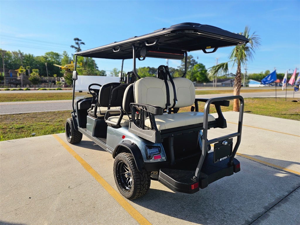 The STAR EV J Model is a versatile, street-legal electric golf cart built for everyday cruising, neighborhood travel, and community use. With a top speed of up to 25mph and full compliance with LSV (Low Speed Vehicle) federal safety requirements, the J Model delivers smooth and confident performance on local roads and paved paths. Available in multiple passenger configurations ? 6-seat models, plus lifted and long-range options ? the J Model is ideal for solo drivers, couples, families, or larger groups. Each version combines practical performance, modern design, and everyday comfort in one stylish electric vehicle. Built for convenience and durability, the J Model includes features like LED headlights and taillights, safety seatbelts, side mirrors, a flip-down rear seat with storage trunk, and a 7 digital display with backup camera. Optional LiFePO4 lithium battery upgrades provide longer range, faster charging, and extended cycle life for frequent use. Whether you?re searching for a street legal golf cart, lithium golf cart, or a family-friendly electric vehicle, the STAR EV J Model delivers reliable performance, comfortable seating, and modern features designed for daily adventures. Key Features: Street Legal LSV (Low Speed Vehicle) ? Certified for 25mph use Available in 2, 4, and 6 Passenger Configurations LED Lighting & Safety Equipment Included LED Underglow and roof lighting 500 Watt RGB LED Sound Bar 7 Display with Backup Camera Flip Seat with Storage / Rear Trunk Side Mirrors & Automotive-Grade Finish Optional LiFePO4 Lithium Battery Upgrade